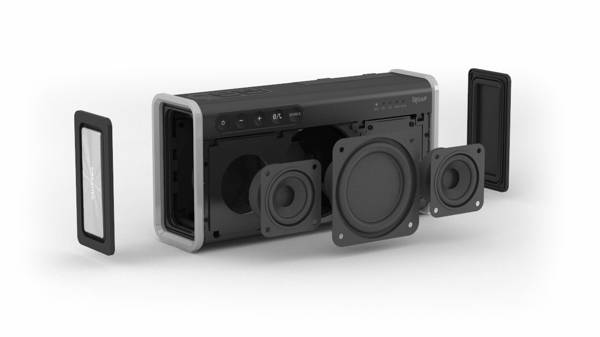 اسپیکر iRoar Go اولین محصول برند کریتیو می باشد که از این تکنولوژی استفاده می کند که تجربه ی متفاوتی برای یک اسپیکر قابل حمل کوچک است. این فناوری صداها را فراتر و گسترده تر نسبت به قوانین استاندارد در زمینه طراحی منعکس می کند. برای وجود این تکنولوژی نیاز به داشتن درایورهای قدرتمند می باشد که برای یک اسپیکر در این سایز امکان پذیر نیست. اما مهندسان ما این مورد را برطرف کرده اند با طراحی یک سیستم صوتی جامع و استفاده از الگوریتم های صوتی بهمراه دو آمپلی فایر و یک معماری مهندسی پیچیده این ناممکن را ممکن ساختند.