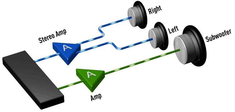 سابووفر نئودیمیومی 2.5 اینچی وجود دارد که در این اسپیکر رنج های بالا و متوسط را به بهترین نحو ایجاد میکند. همچنین قابلیت پخش صدا به صورت واید نیز وجود دارد.