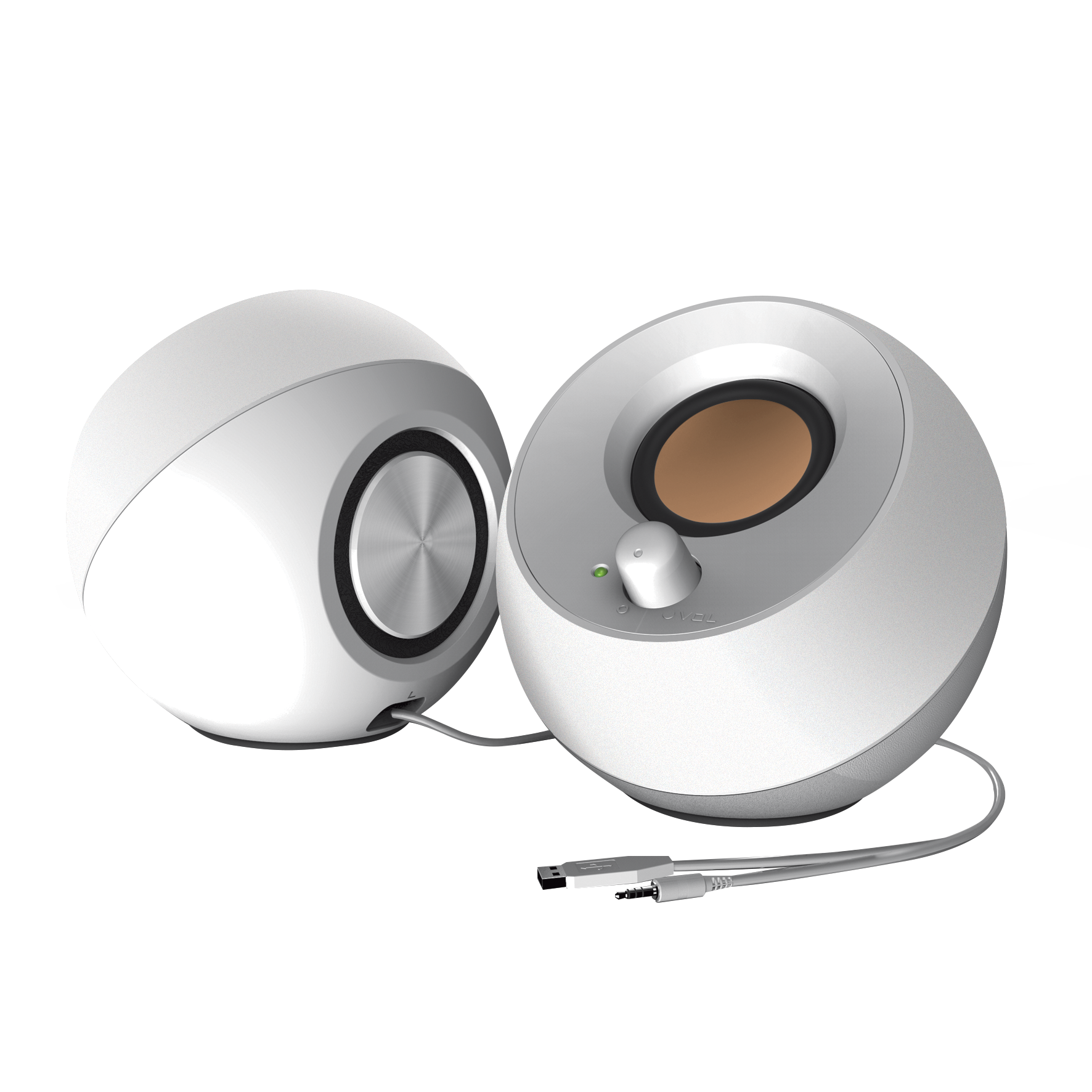 این اسپیکر جدیدا به عنوان اسپیکر برتر زیر 100 دلار توسط مجله PC World معرفی شده است و محصولی عالی برای ارتقا سیستم صوتی لپ تاپ یا کامپیوتر شما میباشد. طراحی این اسپیکر الهام گرفته از باغ صخره ای زاپن میباشد و به شکل دو گوی زیبا و براق طراحی شده. این اسپیکر به صورت 45 درجه بر روی سطح قرار میگیرد و شما صدا را از بهترین و متناسب ترین جهت میشنوید و با زاویه درست به گوش شما میرسند. همینطور در قسمت پشت صدایی وجود دارد تا بیس زیبایی را ایجاد کند. یکی دیگر از ویژگی های منحصر به فرد این اسپیکر این است که منبع انرژی را از طریق درگاه USB تامین میکند و نیازی به اداپتور ندارد.