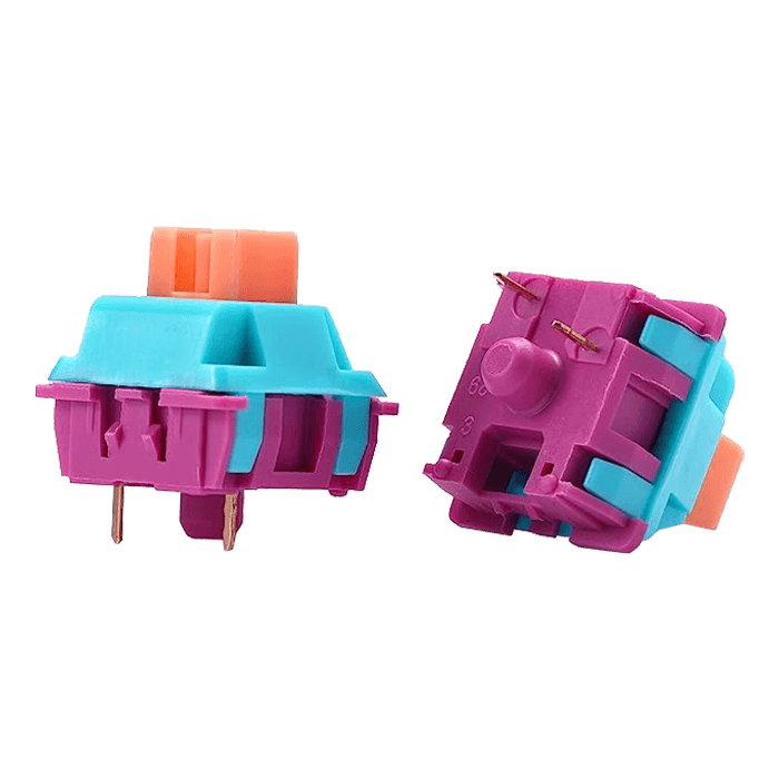 24 سوئیچ با كيفيت در جعبه وجود دارد، به همراه کلاهک اضافی و کشنده سوئیچ، هر سوئیچ دارای دوام 50 میلیون کلیک است.