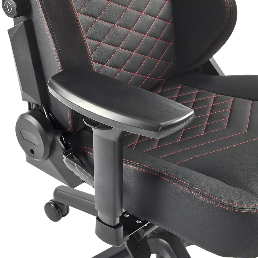 ترکیب رنگ مشکی با دوخت قرمز در طراحی این صندلی ظاهری حرفه‌ای، جذاب و خاص به آن بخشیده است. پایه پنج‌شاخه‌ای مقاوم به همراه چرخ‌های PU با قطر ۶۰ میلی‌متر، جابجایی روان و بدون صدایی را فراهم می‌کنند. این پایه‌ها توانایی تحمل وزن تا ۱۴۰ کیلوگرم را دارند و برای اکثر کاربران مناسب هستند. طراحی این صندلی برای فضاهای گیمینگ حرفه‌ای، اتاق‌های کار مدرن یا حتی دفاتر مدیریتی ایده‌آل است.