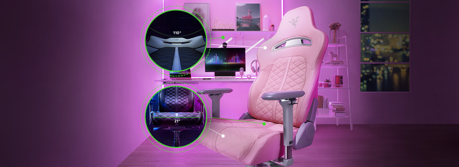 دستیابی به نقطه ای از راحتی از طریق توزیع وزن، زمان آن فرا رسیده است که در صندلی بازی فرو بروید و در کل روز از بازی لذت ببرید. صندلی بازی Razer Enki از طریق ترکیبی از قوسهای شانههای کشیده ۱۱۰ درجه و پایه صندلی فوق عریض ۲۱ اینچی، توزیع وزن را برای راحتی طولانی مدت در طول ماراتنهای بازی تضمین میکند.