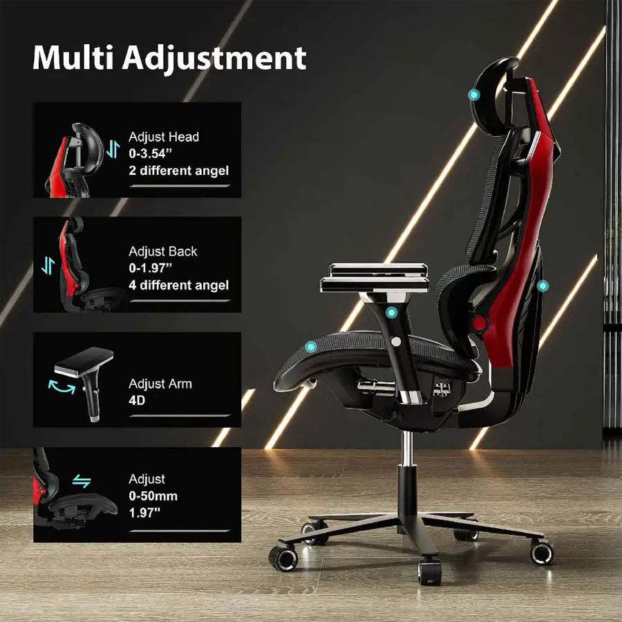 یکی از ویژگی های این صندلی ارگونومیک “مکانیسم تکیه گاه تطبیقی بدون تماس” است. بدون هیچ گونه لمس فیزیکی برای تنظیم، صندلی سازگار شده و در موقعیتی راحت و حمایتی برای کاربران تنظیم می شود.