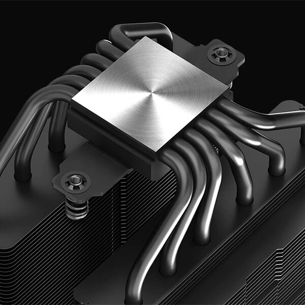 AK6230 Zero Dark دارای یک پایه مسی محدب که ماشین کاری دقیق شده و شش لوله حرارتی مسی است که قابلیت انتقال حرارت پیشرفته را ارائه میدهد. پره های ماتریسی متراکم که با طرح هیت سینکه دو برجی ترکیب شده و کارایی بهتری را برای سیستم های قوی ارائه میدهد.