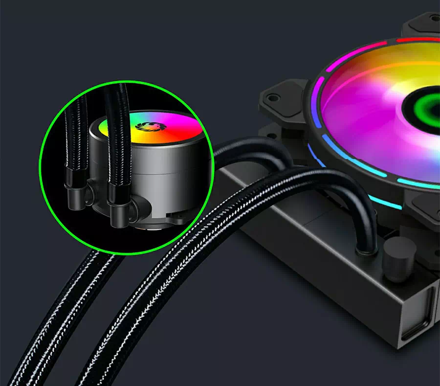 خنک کننده Ice Chill 360 از شرکت Gamemax آبی میباشد و TDP آن تا 450W است. این خنک کننده سطح بالا با طراحی منحصر به فرد نورپردازی RGB و آینه جلوه فوق العاده ای به سیستم شما میدهد. این نورپردازی قابل شخصی سازی میباشد و با اتصال آن با مادربرد میتوانید از آپشن های زیادی برای شخصی سازی برخوردار شوید. سازگار با (ASUS Aura Sync,MSI Mystic Light Sync,Gigabyte RGB Fusion,ASrock RGB Sync). خنک کننده IceChill 360 بالاترین استاندارد های مهندسی را برخوردار میباشد و خیال شما را از خنک سازی سیستم شما حتی در پیچیده ترین شرایط آسوده میکند. سه فن PWM بیصدا با نورپردازی RGB قابل شخصی سازی بهترین عملکرد را ارائه میدهد. بلاک آب از مس خالص با طراحی Micro Channel انتقال گرما را به بهترین نحو انجام میدهد. پروانه متعادل و بلبرینگ با کیفیت این خنک کننده عملکرد بیصدا را ارائه میدهد. پره هایی با چگالی کم در هر اینچ رادیاتور جریان هوای بیشتری را در نویز کمتر ارائه میدهد. پوشش تفلون روی لوله موجب میشود تا نشتی آب نداشته باشد و عمر مفید این خنک کننده افزایش یابد.