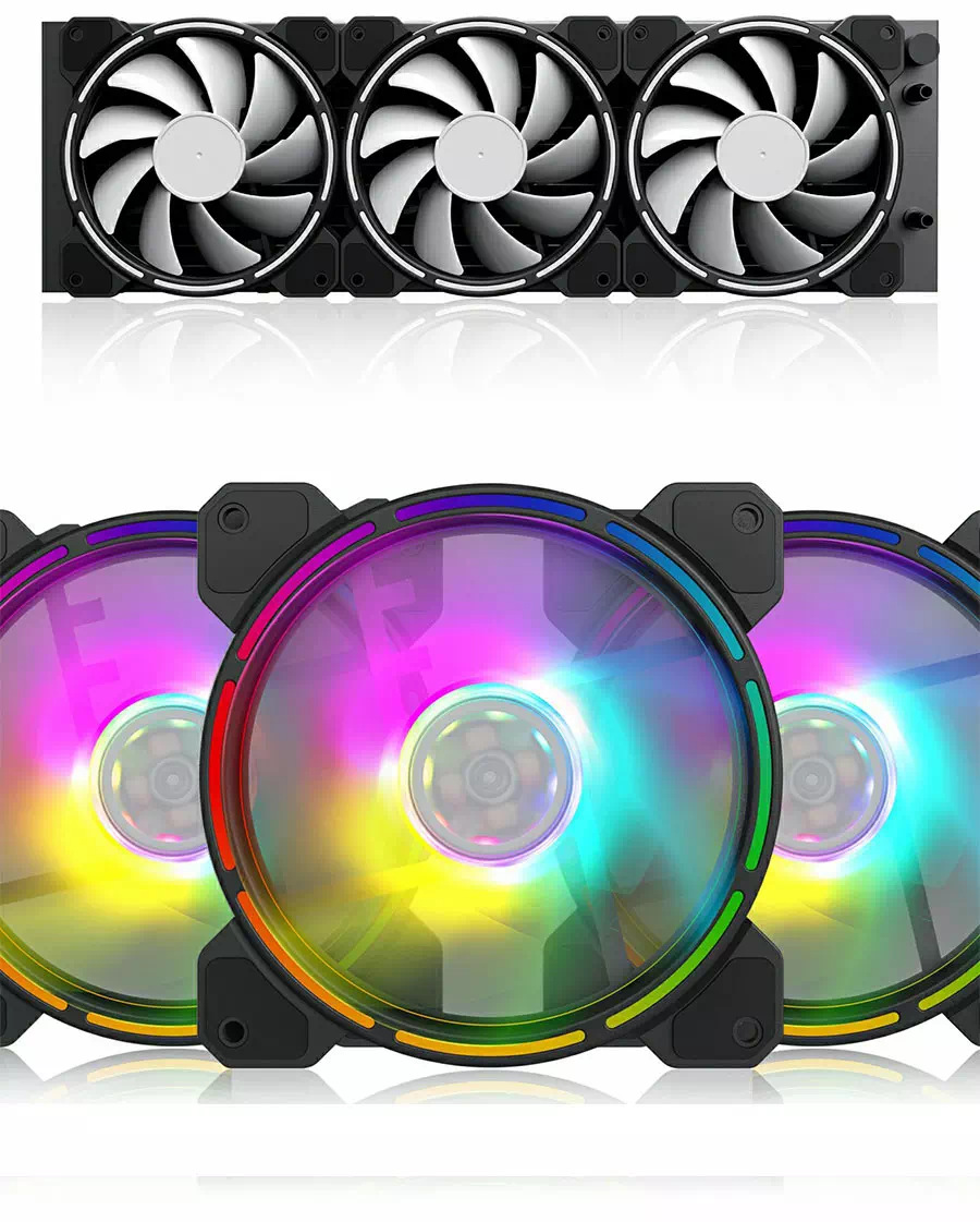 2.نوار های RGB فن و پمپ از طریق ریموت کنترل قابل شخصی سازی میباشند.