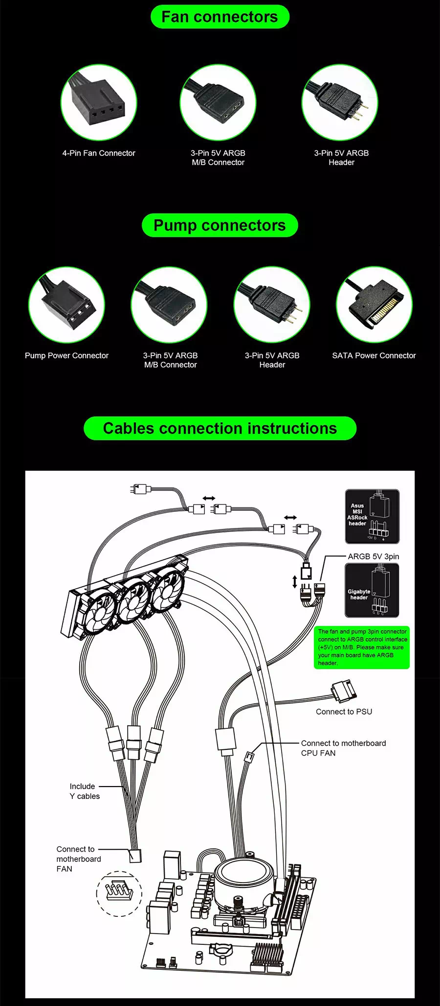 1.فن را به کانکتور RGB پمپ وصل کنید