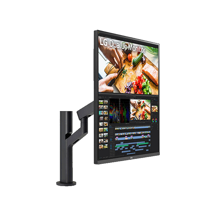 مانیتور ال‌جی DualUp با پایه Ergo با ایجاد یک ایستگاه کاری انعطاف‌پذیر برای وضعیت بهتر و راحت‌تر به افزایش بهره‌وری کمک می‌کند.