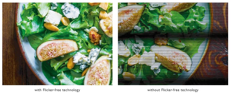 فناوری انحصاری Flicker-Free برای جلوگیری از خستگی و آسیب دید، لرزش مضر LCD های سنتی را از بین میبرد. صفحات LCD در هر ثانیه حدود 250 بار پرش دارند و چشمان شما این سوسو ها را نمیبیند، اما مطمئنا در بلند مدت حس خواهد شد، رو حالت Flicker Free قرار دهید، چشمان شما سپاسگزار خواهند شد.