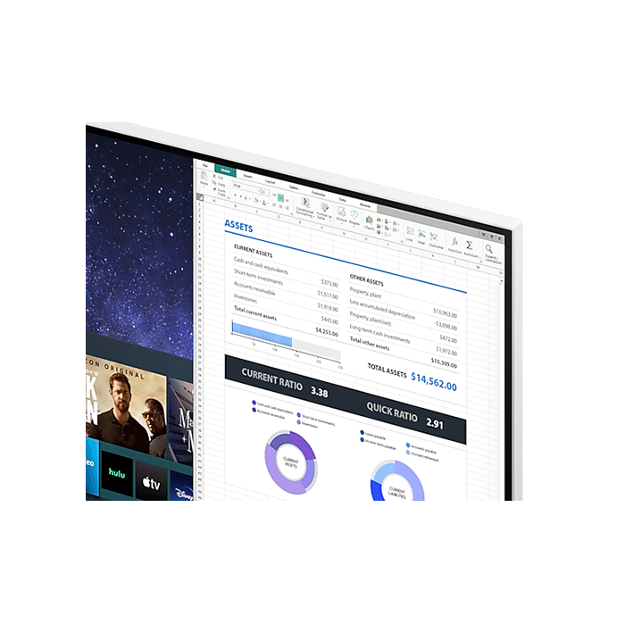 این مانیتور با فناوری Wireless DeX یک تجربه کامل از رایانه شخصی را بدون هیچ رایانه شخصی به شما ارائه میدهد. از برنامههای بهرهوری تلفن همراه، مانند کنفرانس ویدیویی، اسناد و مرورگرها، فقط از طریق مانیتور و تلفن خود استفاده کنید. برای دیدن عکسها یا تماشای فیلم در صفحه بزرگ، کافی است با استفاده از Tap view با گوشی خود روی آن ضربه بزنید. علاوه بر این، با AirPlay 2 داخلی، میتوانید محتوا را از دستگاههای اپل به اشتراک بگذارید.