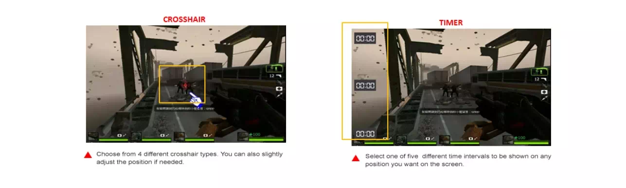 قابلیت عملکرد ویژه GamePlus برای فعال کردن دستورات OSD و تایمر. با توجه به محیط بازی خود از بین چهار ویژگی مختلف انتخاب کنید و زمان پخش و زمان ساخت تایمر را روی صفحه تنظیم کنید. این عملکرد توسط پلیران حرفه ای ارائه شده و اجازه میدهد تا تمرین کنید و مهارت های بازی خود را بهبود ببخشید.