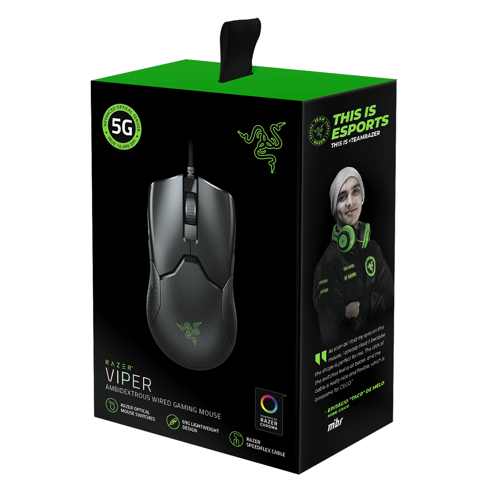 موس ریزر وایپر RAZER VIPER با بکار گیری سنسور 5G تا DPI 16000 را ساپورت میکند و با دقت وضوح 99.4% سرعت بسیار بالا در تصحیح اشتباهات و دقتی مرگبار باعث قهرمانی شما در گیم میشود.