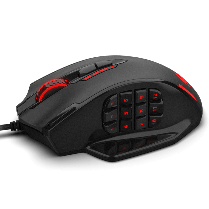 ماوس Redragon M908 دارای 7 دکمه روی ماوس و 12 دکمه کناری قابل برنامه ریزی است که این ماوس را تبدیل به یک سلاح خاص برای گیمر های MMO میکند. پد های نرم و صاف تفلون با دوام نهایت کنترل را در اختیار شما میگذارد. کابل فیبر بافته شده به طول 1.8 متر که با یک USB روکش طلا متصل میشود و کیفیت اتصال شما را تضمین میکند.