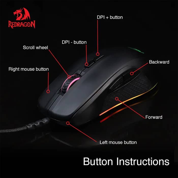این موس طراحی ای ارگونومیک دارد و دارای نور پس زمینه RGB میباشد. DPI این موس از طریق نرم افزار تا 10000 بالا میرود و در صورت دسترسی سریع از روی موس، میتوانید DPI آن را در 5 سطح 1000، 2000،3000، 5000 و 10000 تنظیم کنید. این سنسور در کنار سوییچ میکرو دقت بسیار بالا، طول عمر و دوام بیشتر و پاسخگویی فوق العاده را تضمین میکند و برتری قابل توجهی را نسبت به رقبایتان ارائه میدهد.