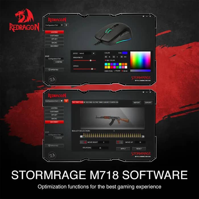 از ویژگی های این موس میتوان به 7 دکمه قابل برنامه ریزی، 4 پروفایل شلیک، 5 پروفایل RGB به همراه 16 میلیون رنگ (همچنین میتوان نورپردازی را غیر فعال کرد) میباشد. موس M718 طیف گسترده ای از شخصی سازی را به شما ارائه میدهد و به شما این امکان را میدهد تا با کنترل کامل در مسیر هدف هایتان از رقبای خود پیشی بگیرید.