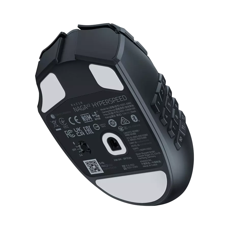 موس ریزر RAZER naga V2 Hyperspeed با بهره گیری از تکنولوژی HYPERSPEED، حدود ۲۵ درصد از تمامی موس های بیسیم سریعتر می باشد. با توجه به سرعت بالا در انتقال اطلاعات و کمترین تأخیر در کلیک کردن و فرکانس یکپارچه و اشباع اطلاعات شما حتی متوجه اینکه از یک موس بدون کابل استفاده میکنید نخواهید شد و با داشتن ۲ حالت اتصال شما میتوانید برای عمر باتری بیشتر به بلوتوث تغییر حالت دهید.