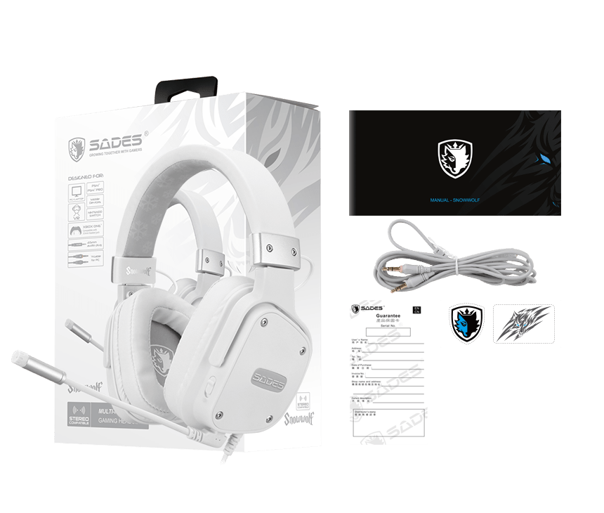 Snowwolf یک هدست مخصوص بازی چند پلتفرمی است که می تواند از طریق جک هدست 3.5 قطری 4 میلی متری به PS4 / XBOX ONE (نسخه 2015) / لپ تاپ / نینتندو سوییچ / VR / دستگاه های موبایل متصل شود. کابل تبدیل با دو جک 3.5 میلی متری صدا و میکروفون برای اتصال به کامپیوتر است.