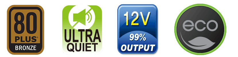 دارای گواهینامه های +80 PLUS Bronze/Ultra Quiet/12V/ECO