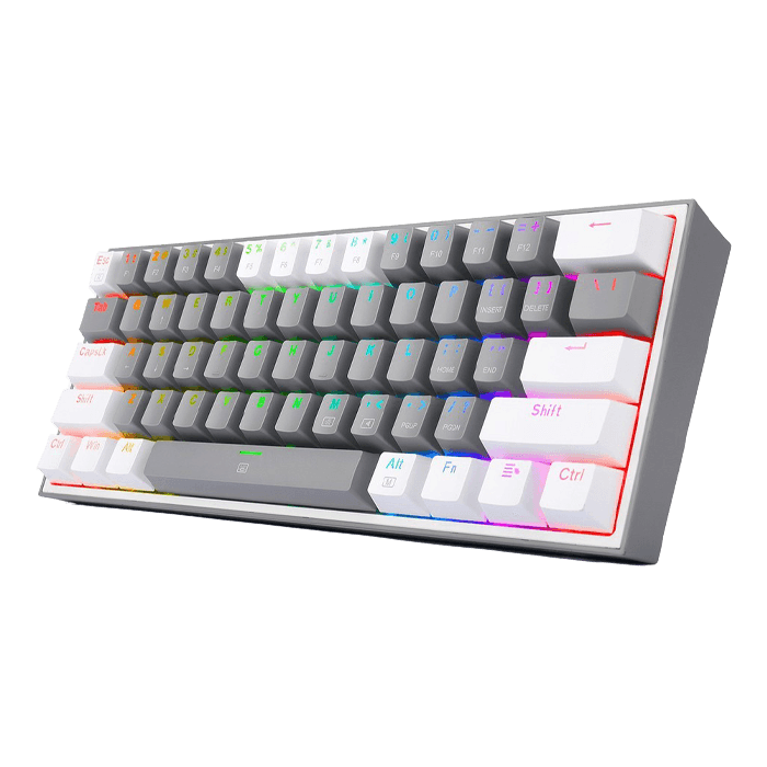 کلیدهای 60% سیمی و 2 رنگ: صفحه کلید Redragon 60% در حالت سیمی با طرح بندی کلیدهای ترکیبی دو رنگ. 61 کلید فوقالعاده فشرده ، فضای با ارزش میز را با عناصر پر جنب و جوش مانند نورپردازی و طراحی شیک زیبا تر میکند.