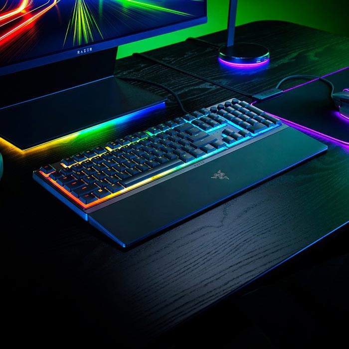 با کيبورد Razer Ornata V3 آشنا شوید. یک کیبورد گیمینگ Low Profile مجهز شده به نورپردازی RGB، که یک طراحی جدید فوق نازک را ارائه میدهد. کار و بازی را با یک کیبورد هیبرید ریزر به بهترین نحو انجام دهید.
