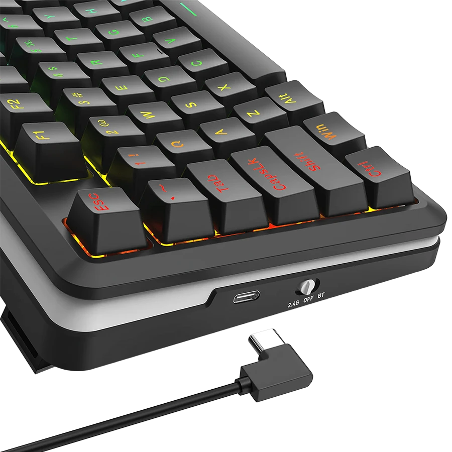 یکی از ویژگیهای برجستهی این کیبورد مکانیکال، باتری قدرتمند آن است که تا ۷۵ ساعت استفاده مداوم را پشتیبانی میکند. این بدان معناست که کاربران میتوانند بدون نگرانی از اتمام شارژ، جلسات کاری یا گیمینگ طولانی را با خیال راحت تجربه کنند. همچنین، شارژ مجدد از طریق کابل Type-C انجام میشود که سرعت و راحتی بیشتری را فراهم میآورد.