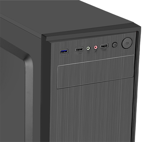 در پنل جلوی کیس دکمه های روشن/ خاموش، ریست، درگاه های صدا، دو پورت USB 2.0 و یک پورت USB 3.0 وجود دارد.