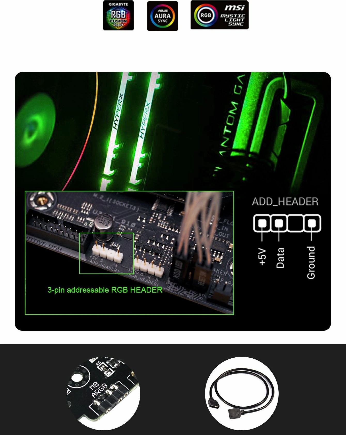 میتوانید این کنترلر باکس را با سوکت 3 پین +5V به مادربرد وصل کنید و در کنار کنترل کردن و شخصی سازی نورپردازی فن و نوار های RGB، کنترل نورپردازی مادربرد نیز بدست بگیرید