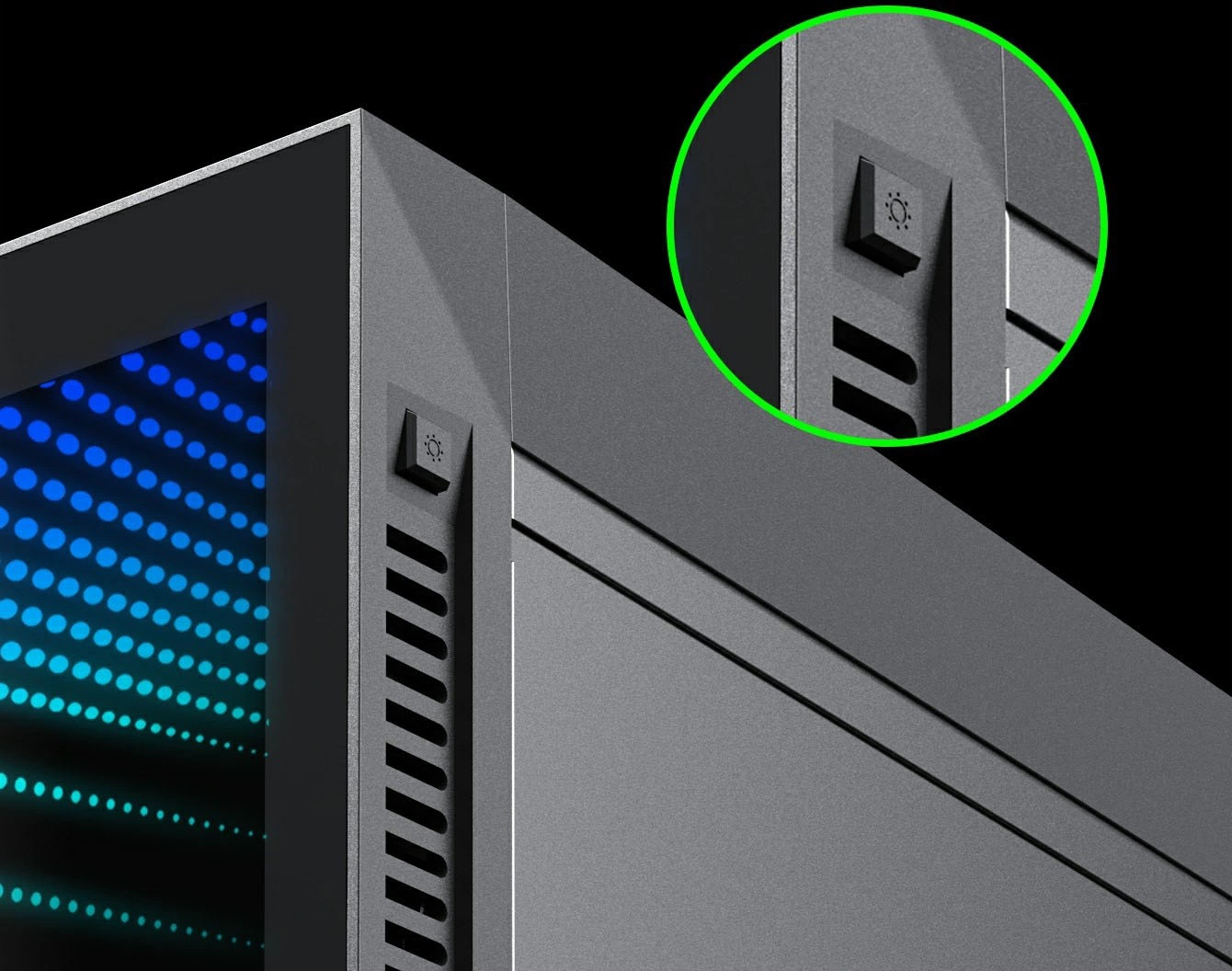 کنترل دستی فن ARGB و نوار های LED به کمک دکمه در کنار کیس امکان پذیر میباشد.