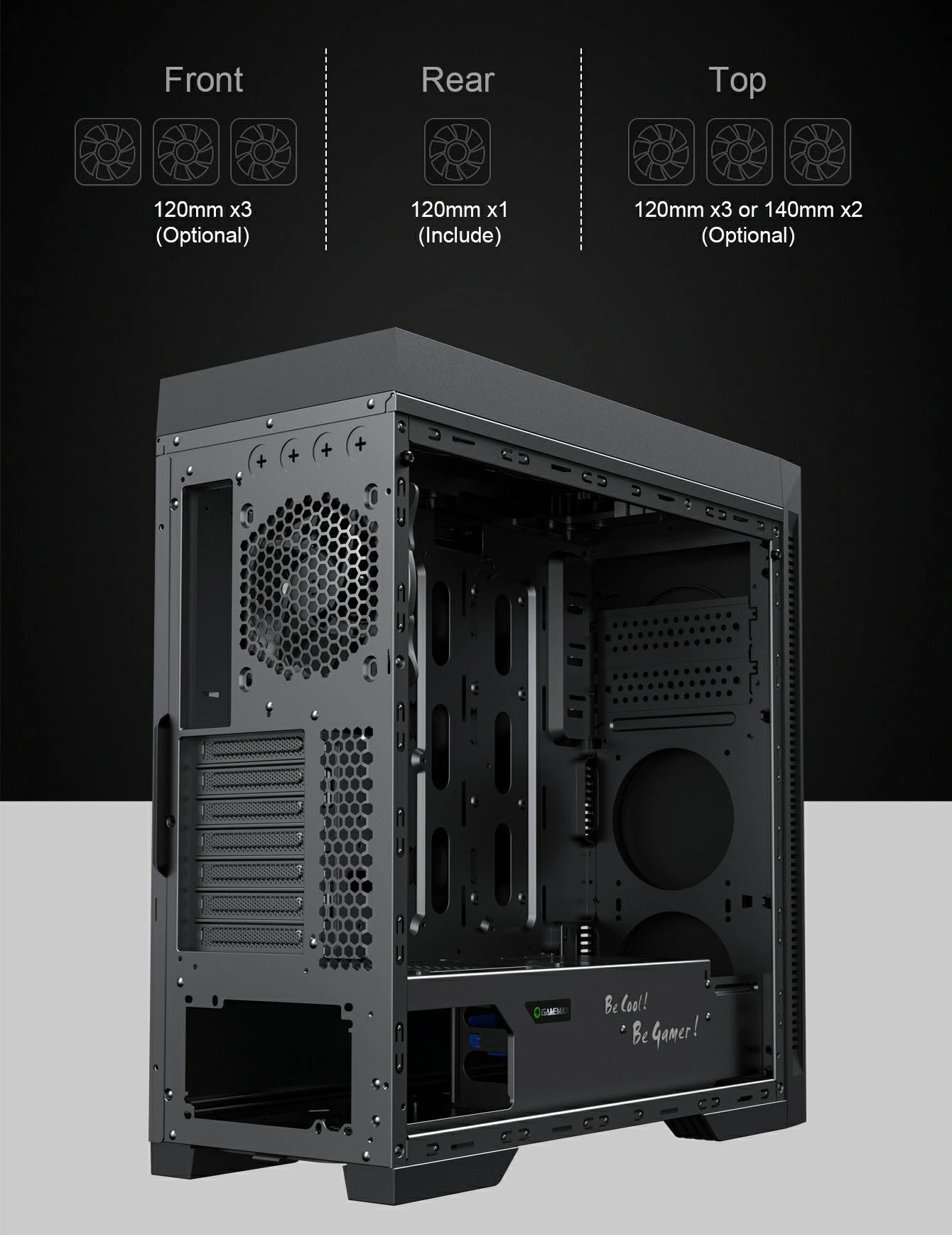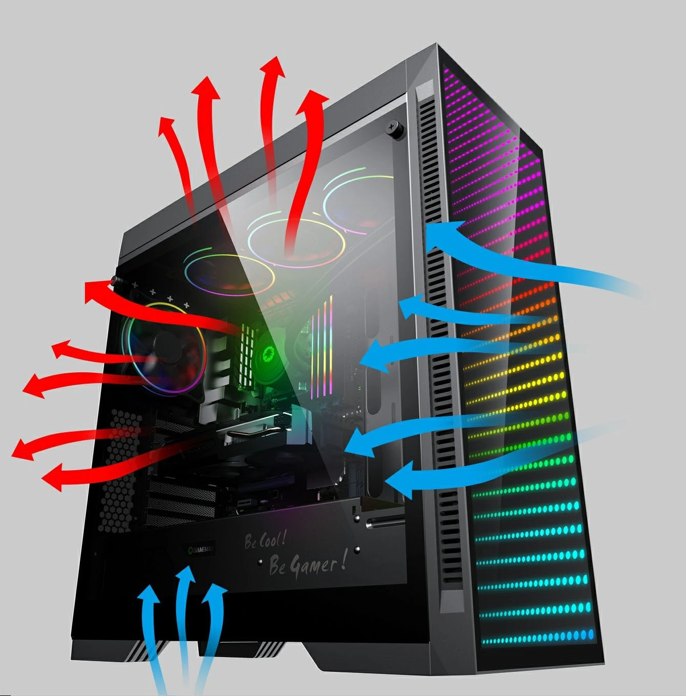 هوای خنک از جلو و پایین کیس وارد می شود و از پنل های بالا و پشتی خارج می شود
