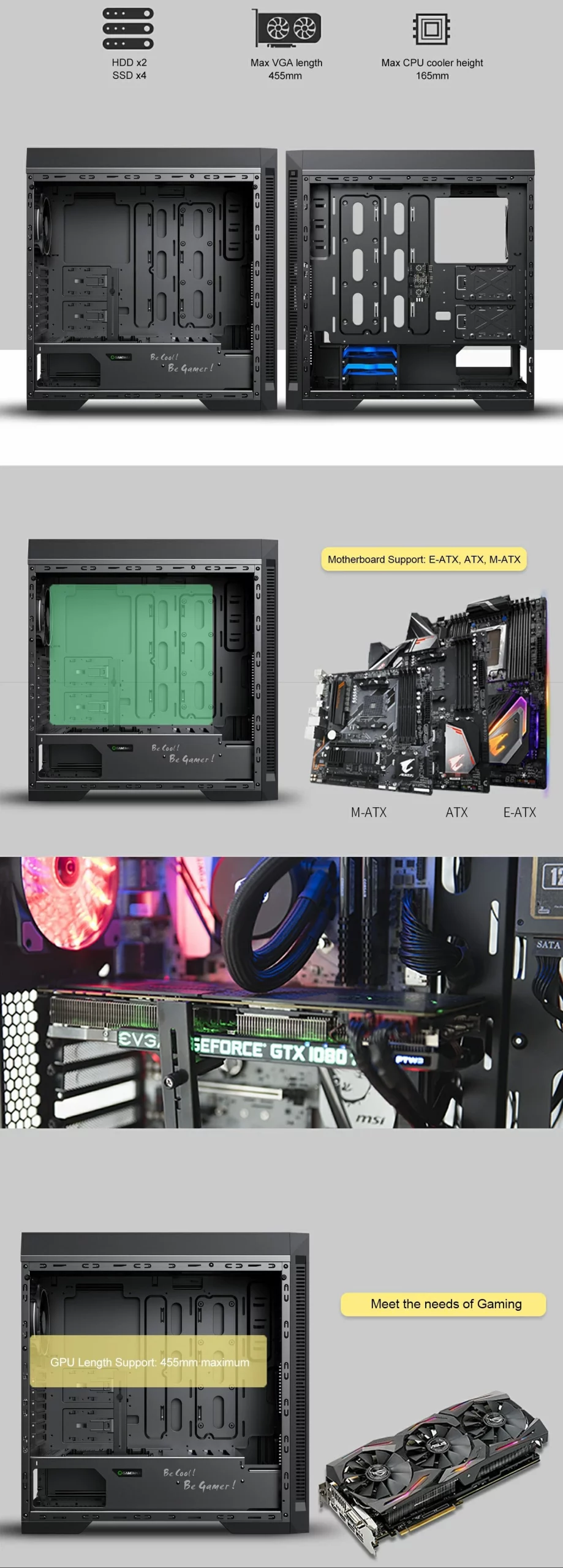 پنل های جلویی و چپی این کیس از شیشه حرارت دیده به ضخامت 4 mm میباشند.