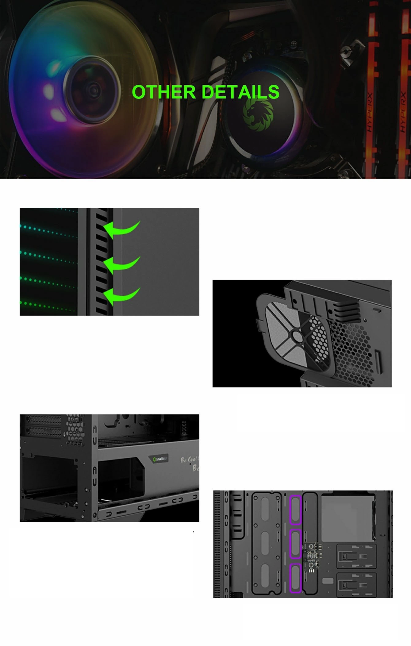در طرفین پنل جلویی محفظه هایی برای تهویه هوای بهتر کیس طراحی شده است