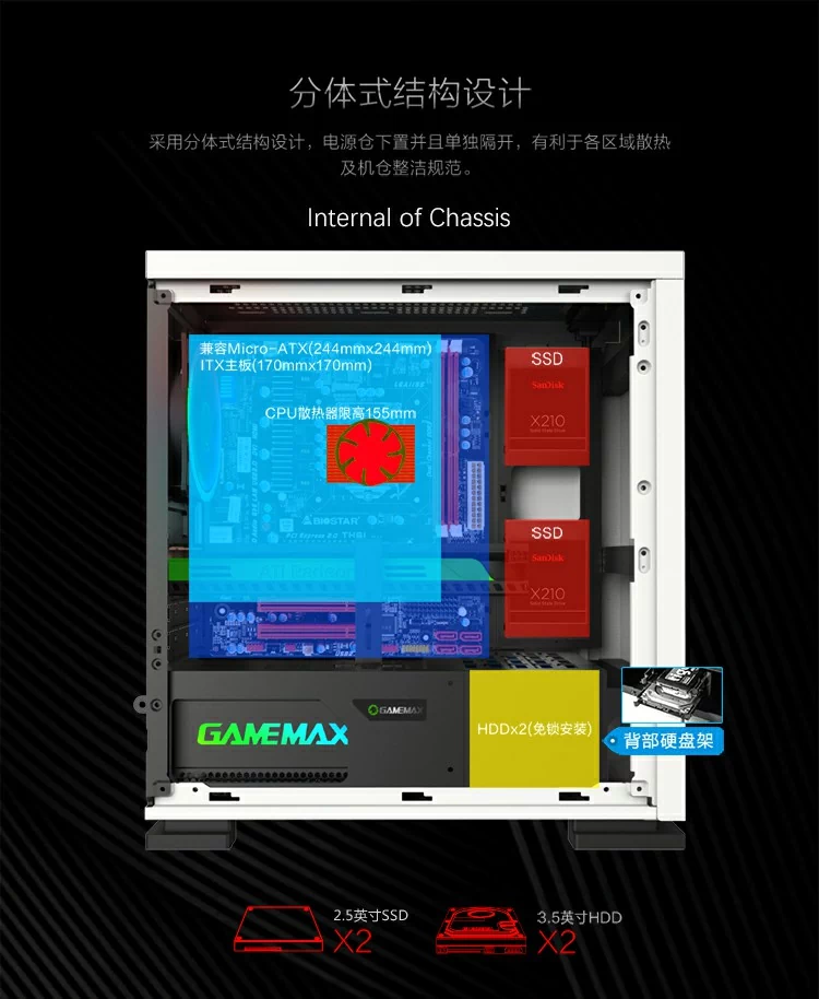 پشتیبانی از مادربرد های Micro ATX تا ابعاد (344mm×344mm) و ITX تا ابعاد (170mm×170mm)
