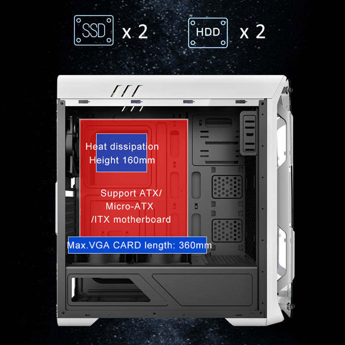 پشتیبانی از 8 فن قابل نصب که از حرارت داخلی کیس جلوگیری کنند.