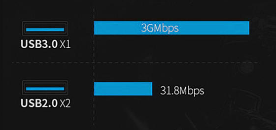 سرعت پورت های USB 2.0 میتواند با وصل کردن کابل 1m به 31.8 MB/S در صورتی که سرعت عادی این پورت ها 20 MB/S میباشد.