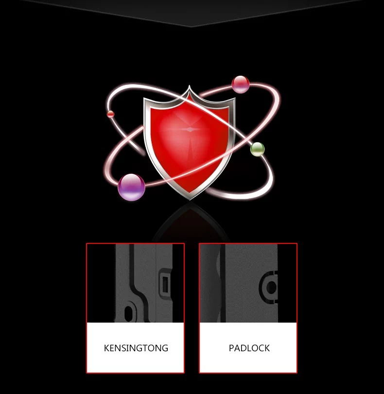 قفل حلقه ای و قفل کنزینگتون دو قفلی هستند که برای این کیس منحصر به فرد طراحی شده اند.