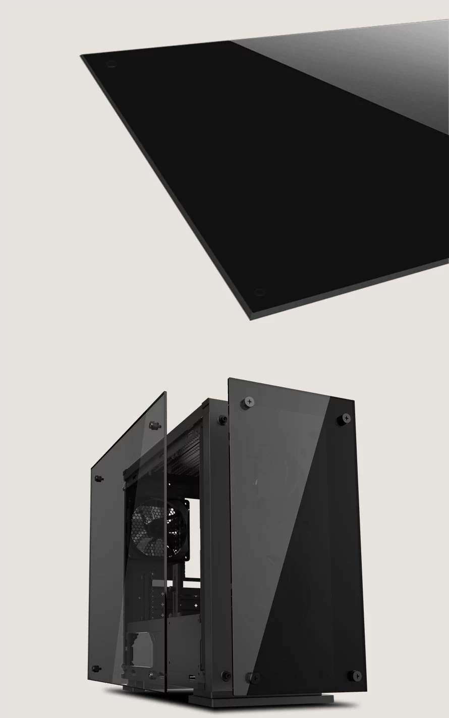 شیشه های حرارت دیده ای که برای کیس H605-TA طراحی شده اند هم ظاهر کیس را جذاب کرده و هم دید خوبی از داخل کیس به کاربر می دهد.