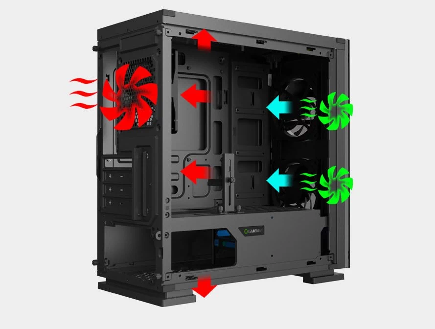 کیس H605-TA از شرکت Gamemax با دو فن 120 mm در پنل جلویی و یکن فن 120 mm در پنل پشتی و قابلیت اضافه کردن دو فن در پنل بالایی حداکثر خنک سازی را انجام می دهد و سخت افزار های داخل کیس همیشه خنک می مانند. همچنین سه فنی که برای کیس H605-TA قرار داده شده است، از سیستم خنک کننده آبی هم پشتیبانی می کنند. گول ظاهر این کیس را نخورید، کیس H605-TA در عین حال که جمع جور است، فضای داخلی وسیعی به کاربر میدهد تا سخت افزارهایی با سایز بزرگ را هم بتوان داخل کیس نصب کرد. پنل بالایی این کیس دارای فیلتر مغناطیسی گرد و غبار است. پنل سمت چپ و جلویی کیس H605-TA از شیشه حرارت دیده استفاده شده است. پنل سمت چپی این کیس شفاف است و دید وسیعی از داخل کیس به کاربر می دهد.