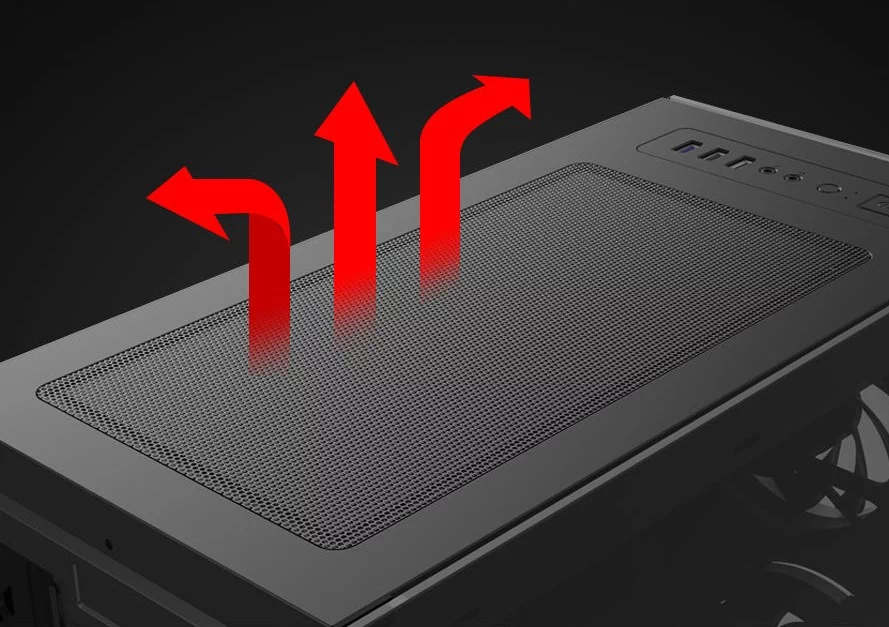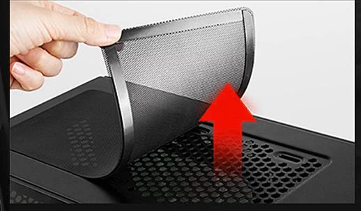 فیلتر مغناطیسی گرد و غبار روی پنل بالایی این کیس طراحی منحصر به فردی دارد.