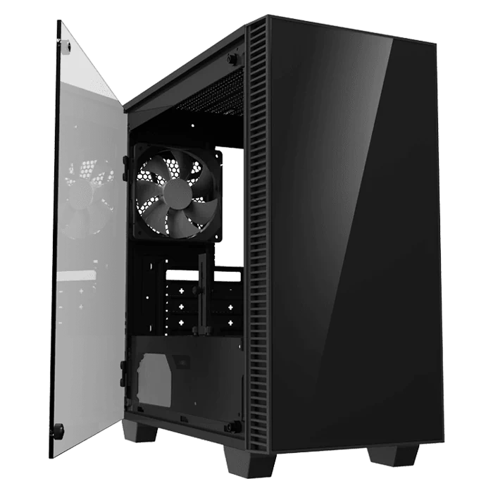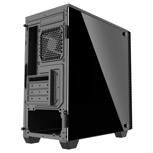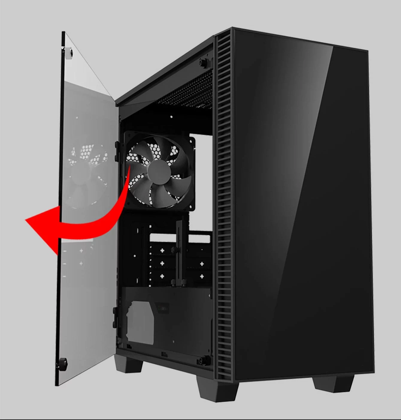 پنل سمت چپ شیشه ای این کیس لولا دار است و به راحتی مانند در باز و بسته میشود. این طراحی بروز موجب شده تا دسترسی به داخل کیس و بررسی داخل کیس و سخت افزار ها آسان باشد