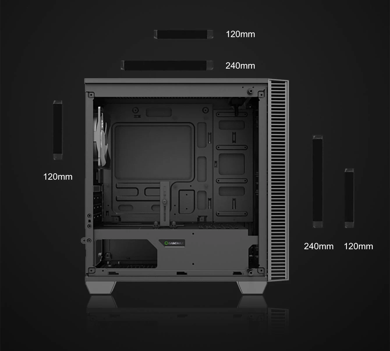قابلیت پشتیبانی از سیستم خنک سازی 120mm یا 240mm در پنل بالایی و جلویی