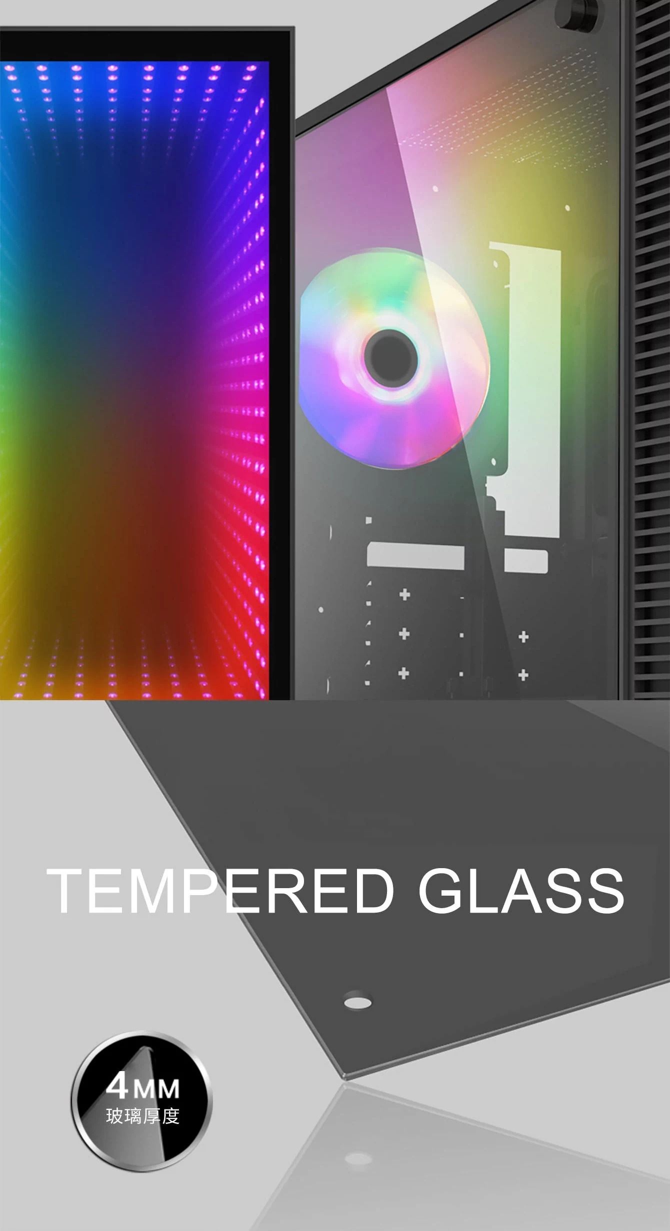 شیشه حرارت دیده پنل جلو و چپ با ضخامت 4 mm و مقاومت بالا از ویژگی های کیس H608 میباشد.