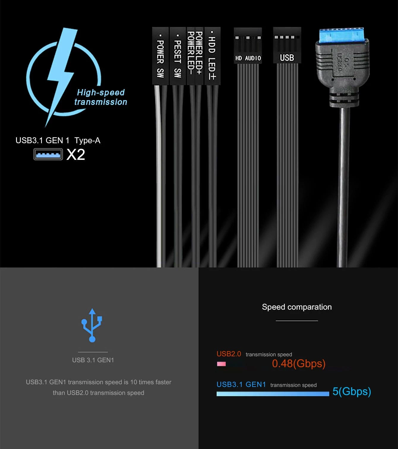 سرعت انتقال خیره کننده پورت های کیس H608 موجب صرفه جویی در زمان کاربر می شود. سرعت انتقال پورت USB3.1 نسل یک (5Gbps) و سرعت انتقال پورت USB2.0 تقریبا ده برابر کمتر یعنی (0.48Gbps) میباشد.