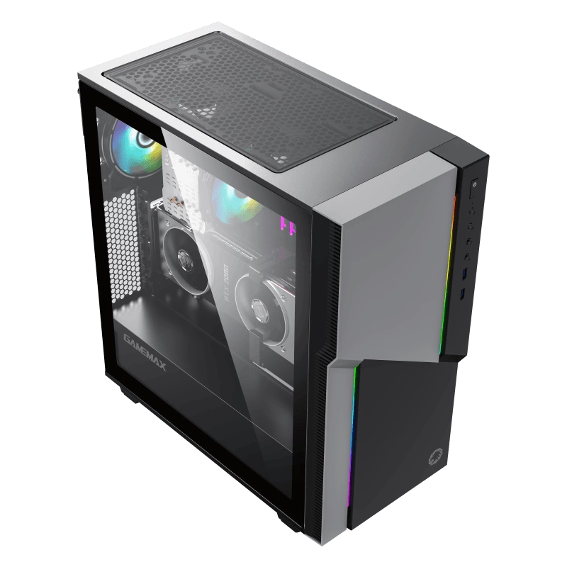 کیس Ninja COC از شرکت Gamemax نوار های RGB دارد که قابل شخصی سازی هستند و به حالت های مختلف نوری تغییر می کنند و ظاهر کیس را جذاب تر نموده اند. یک فن 120 mm با نورپردازی RGB در پنل پشتی و یک فن توربو در جایگاه مادربرد قرار دارد که در کاهش دما کیس به مادربرد کمک می کند. سیستم خنک کننده کیس Ninja بسیار پیشرفته میباشد و با تکنولوژی COC (خنک سازی و اورکلاکینگ) جریان هوا در کیس “T” شکل میباشد و تمام سخت افزار ها خنک می مانند. پنل جلویی این کیس از استیل به ضخامت 0.8mm میباشد و نوار های RGB روی این پنل, کیس Ninja COC را جذاب تر کرده است. پنل سمت چپ این کیس از شیشه حرارت دیده میباشد که دید خوبی از سخت افزار ها و نورپردازی داخل به کاربر می دهد.
