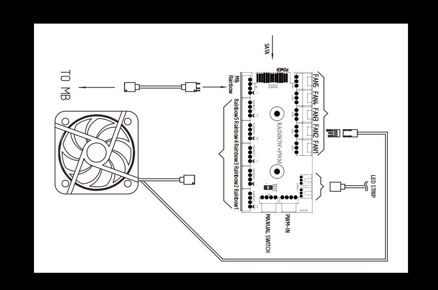 همچنین میتوانید این کنترلر باکس را با سوکت 3 پین به مادربرد وصل کنید و حتی نورپردازی مادربرد را نیز کنترل کنید.