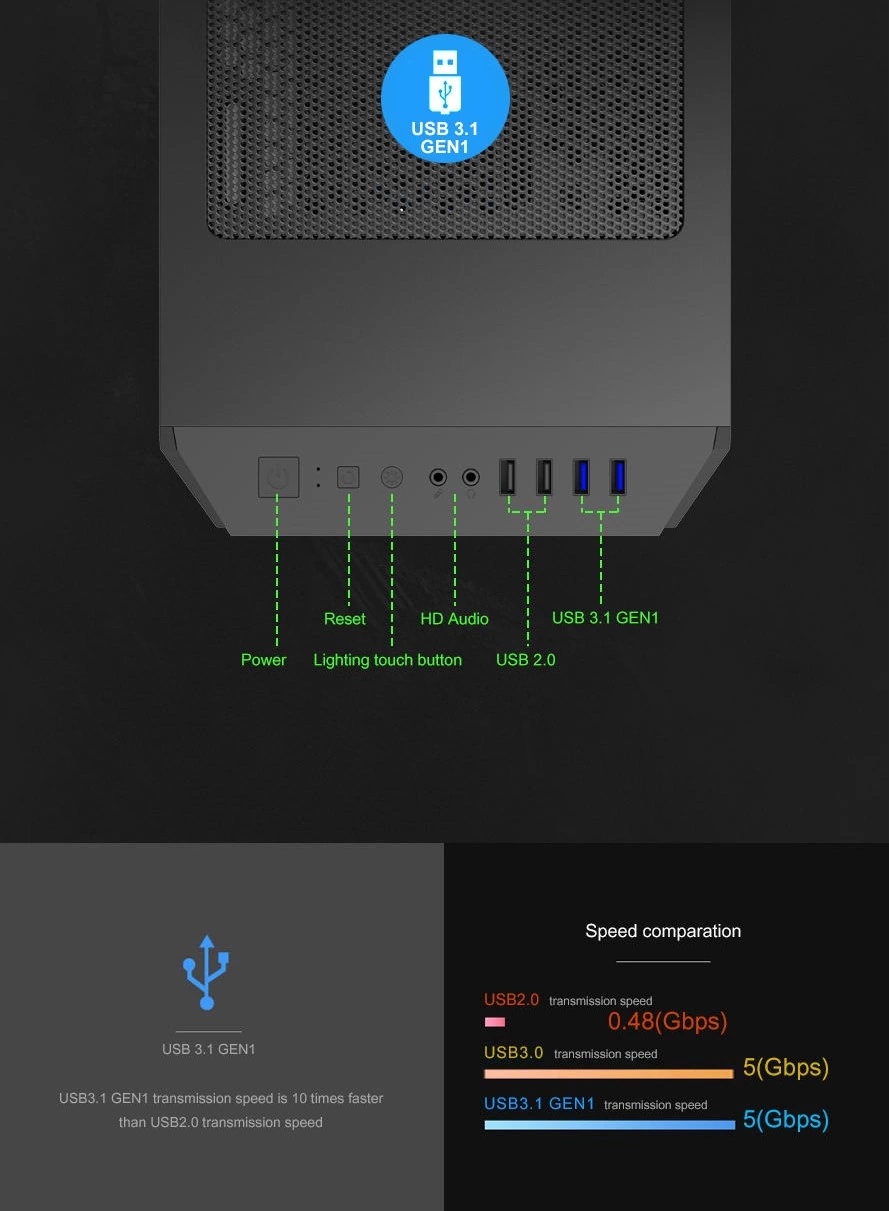 پنل جلویی کامل از فلز میباشد و نورپردازی برجسته RGB ظاهرT801 را جذاب تر نموده است.