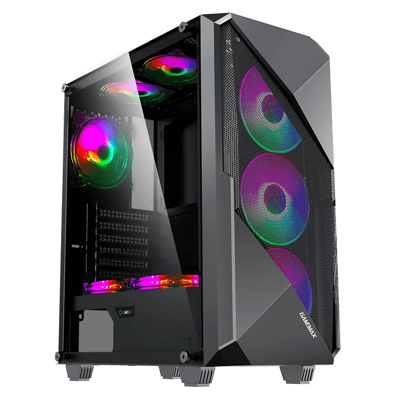 شرکت Gamemax کیس Revolt را با طراحی منحصر به فرد در اختیار کاربران گذاشته است. این کیس سه فن 120 mm در پنل جلو و یک فن 120 mm در پنل پشتی دارد. این فن ها با نورپردازی RGB ظاهر جذابی به کیس Revolt داده است. قابلیت پشتیبانی از هشت فن و جریان هوای بسیار مناسب این کیس موجب شده تا سیستم خنک سازی این کیس خیره کننده باشد. پنل جلویی این کیس از مش است و طرفین آن دریچه هایی دارد که در مجموع باعث اتلاف حرارت و ورود هوای خنک به داخل کیس می شود. پنل سمت چپ از شیشه حرارت دیده است که این شیشه شفاف دید وسیعی از فضای داخلی و نورپردازی ها به کاربر می دهد. کیس Revolt دارای هاب PWM و Rainbow ARGB با سه پین است، که می تواند بیش از 100 حالت نوری را نمایش دهد. این کیس قابلیت اتصال مستقیم این پین به مادربرد از طریق کابل Aura SYNC را دارد که به کمک این اتصالات کاربر میتواند از طریق نرم افزار Mobo به فن و نورپردازی ها کنترل داشته باشد.