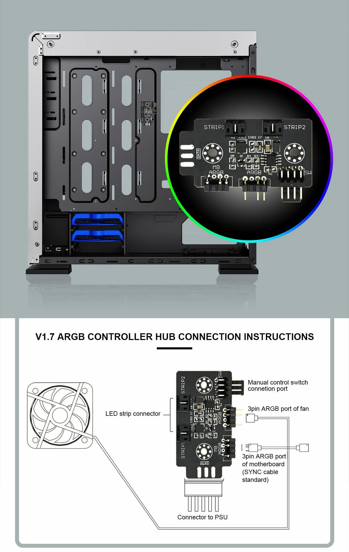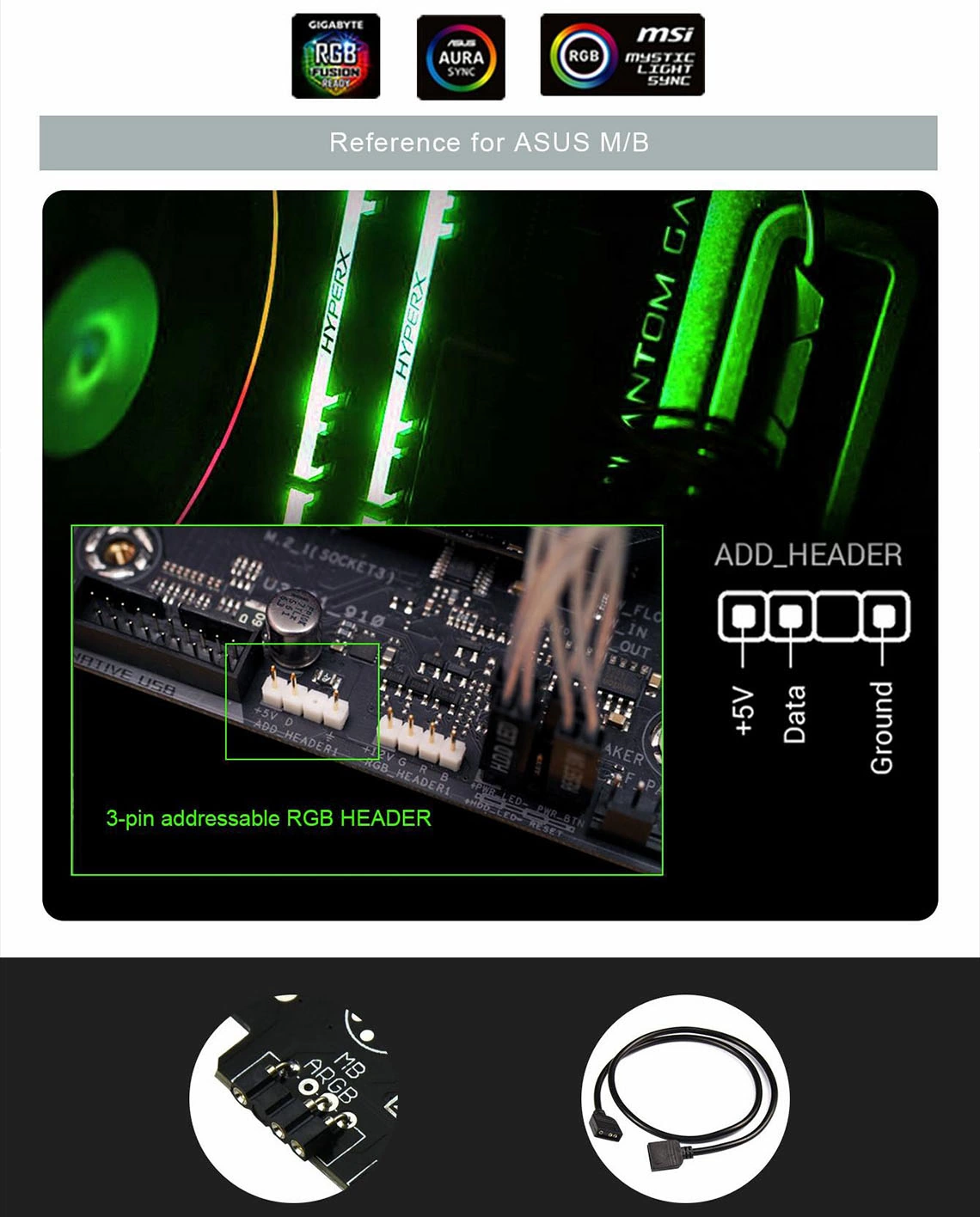 میتوانید این کنترلر باکس را با سوکت 3 پین +5V به مادربرد وصل کنید و در کنار کنترل کردن و شخصی سازی نورپردازی فن و نوار های RGB، کنترل نورپردازی مادربرد نیز بدست بگیرید.