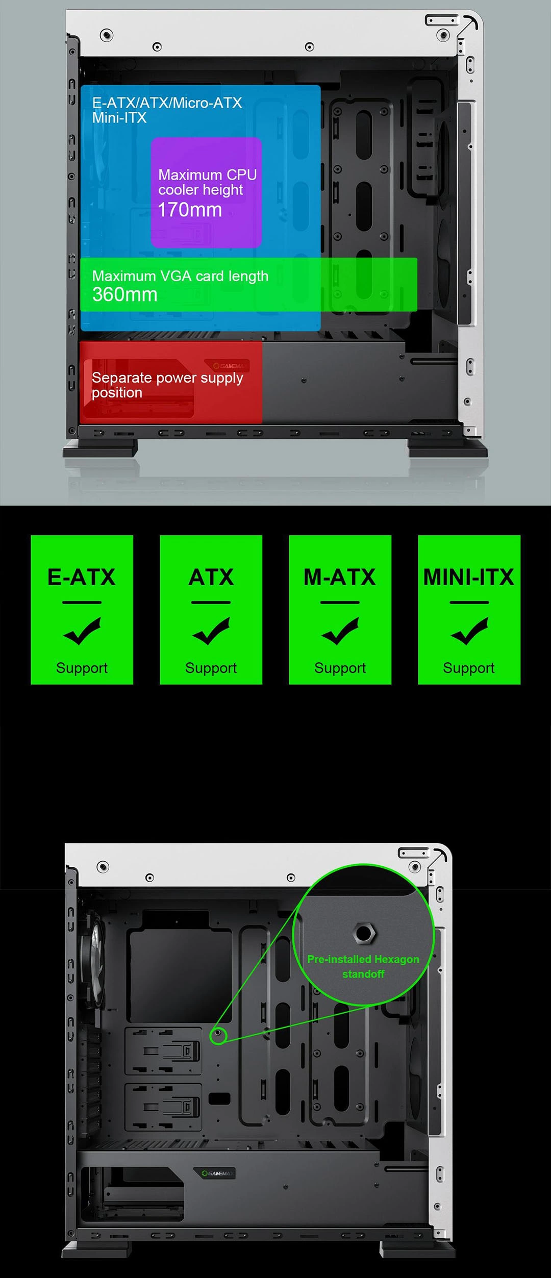 پشتیبانی از مادربرد های E-ATX/ATX/M-ATX/Mini-ITX