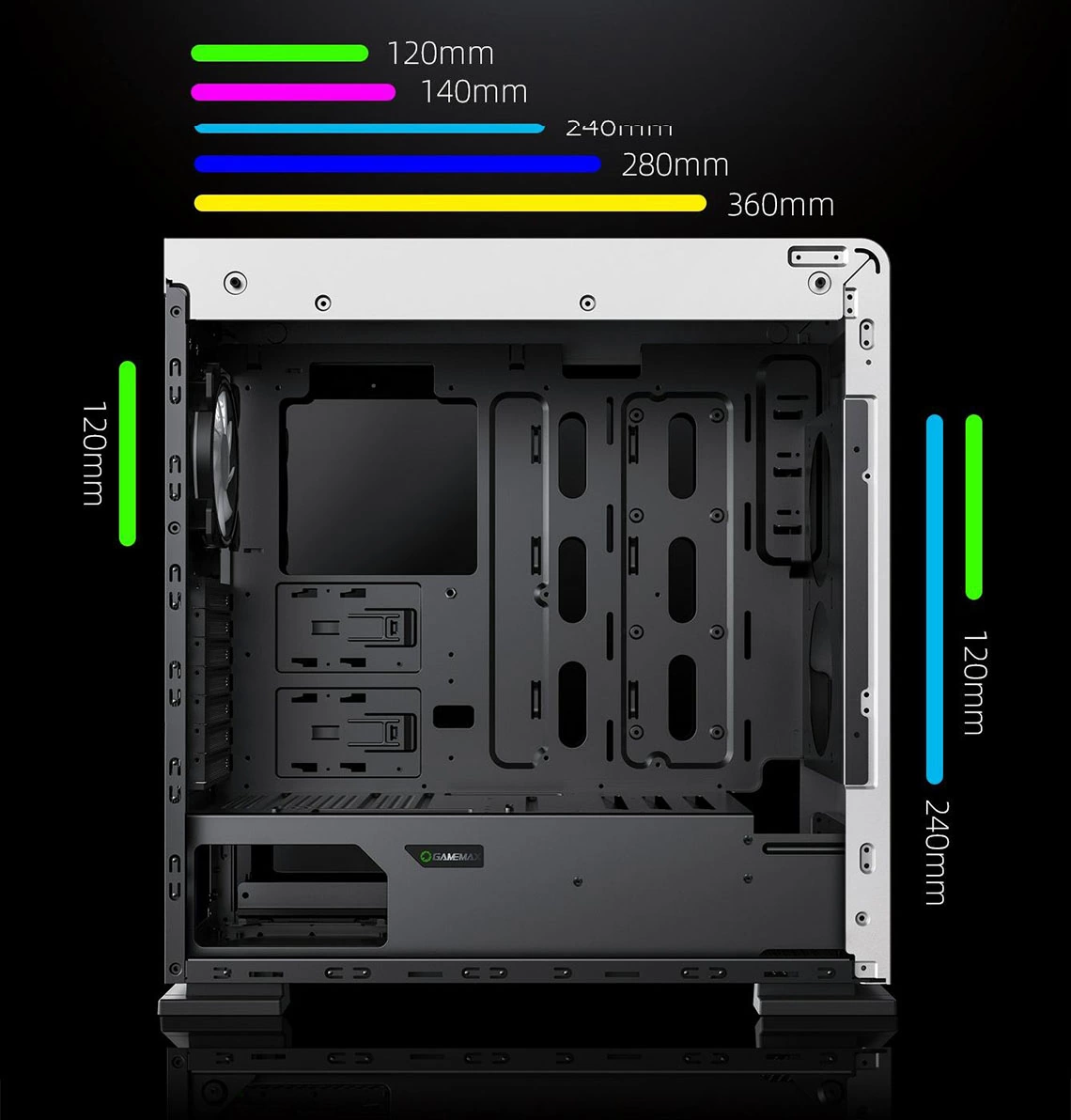 پنل بالایی: قابلیت پشتیبانی از سیستم خنک کننده آبی 120/140/240/280/360 میلیمتری
