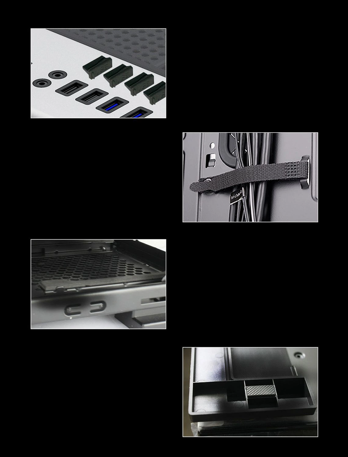 درپوش هایی برای پورت های ورودی/خروجی به منظور جلوگیری از ورود گرد و غبار در کیس Vega Pro قرار دارد